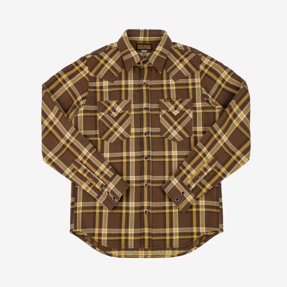The IHSH 372, is an ultra-heavy flannel (UHF) shirt. This western shirt is in an exclusive Iron Heart 12oz fabric, woven from Aspero cotton from the foothills of the Andes Mountains, double brushed on the inside and single brushed on the outside, resulting in a very soft yet heavy, thick, warm and windproof flannel....