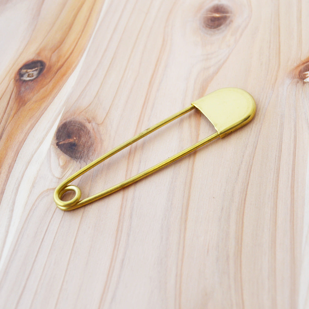 Large safety pin. Press-molded and manufactured by a hardware company established in 1930.