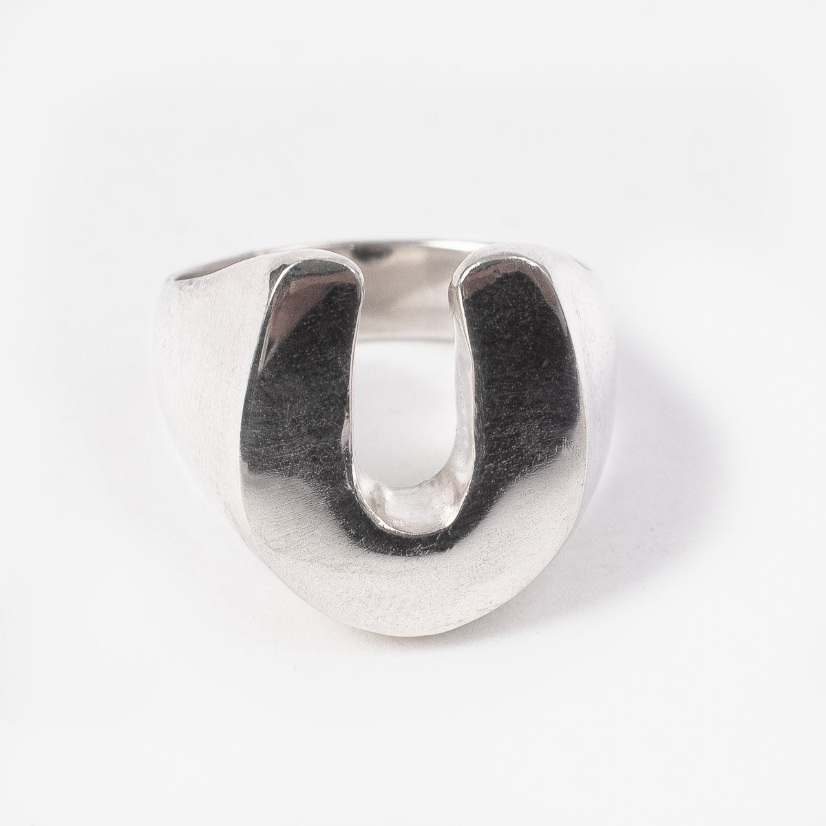 This is a Silver Horseshoe Ring, handmade with 925 Silver (sterling silver), a product by Obbi Good Label. Under the "OBBI GOOD LUCK" collection featuring all our silver jewelleries, this horseshoe ring design symbolizes - Good Luck and ability to ward off evil spirits. Sound supersititious, it is an ancient story from traditional blacksmith.