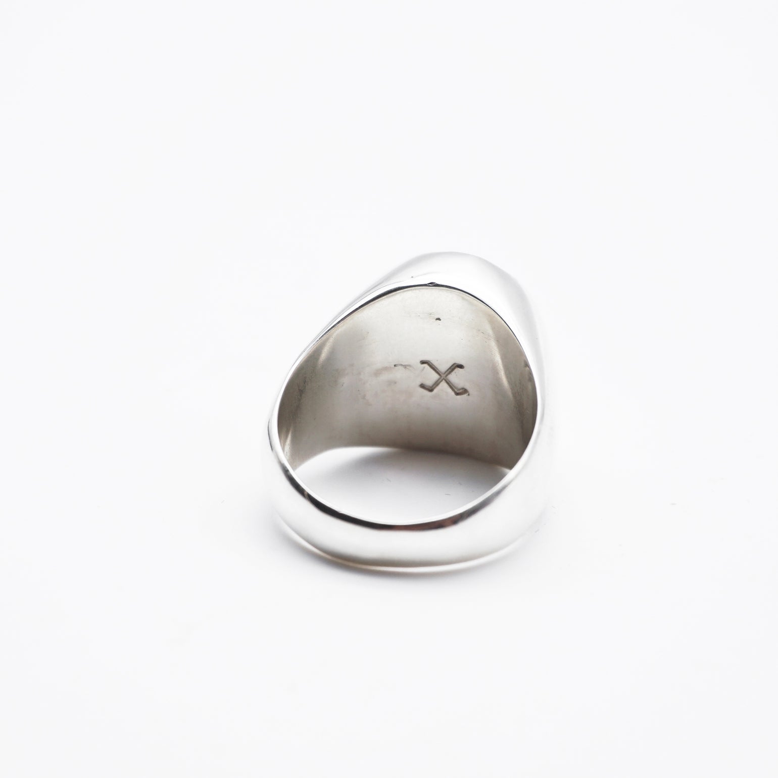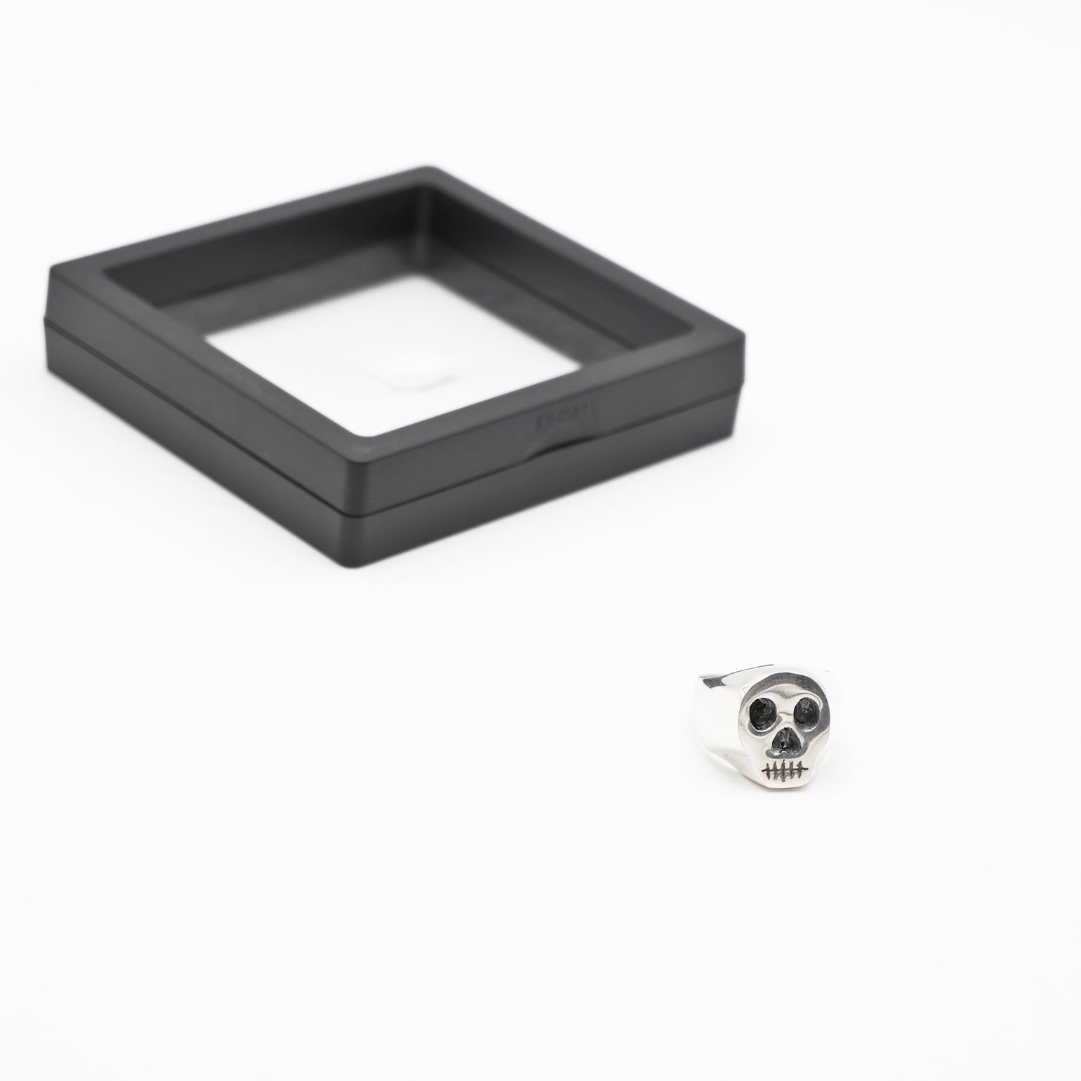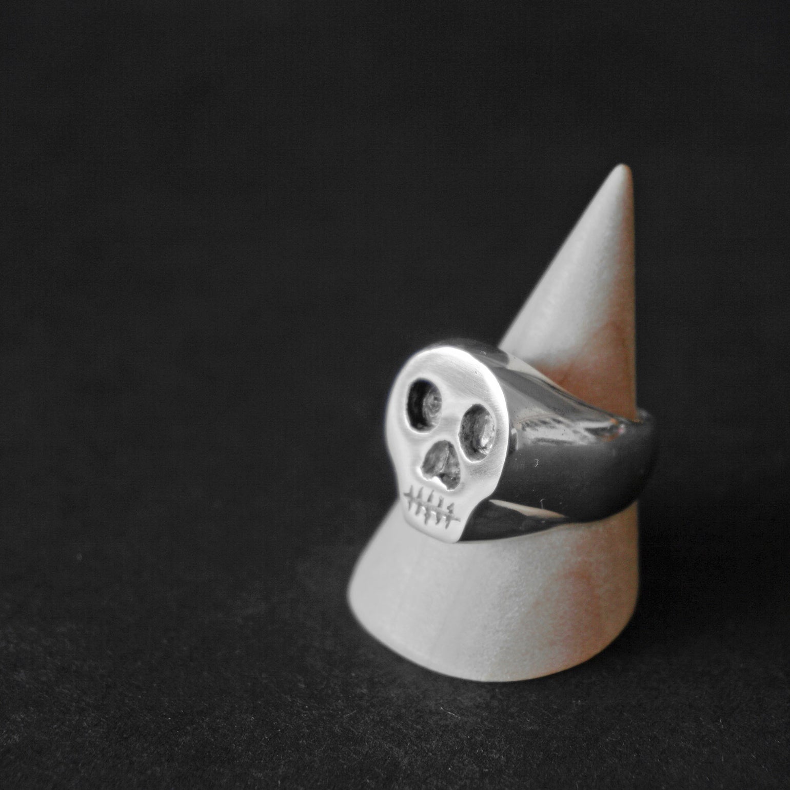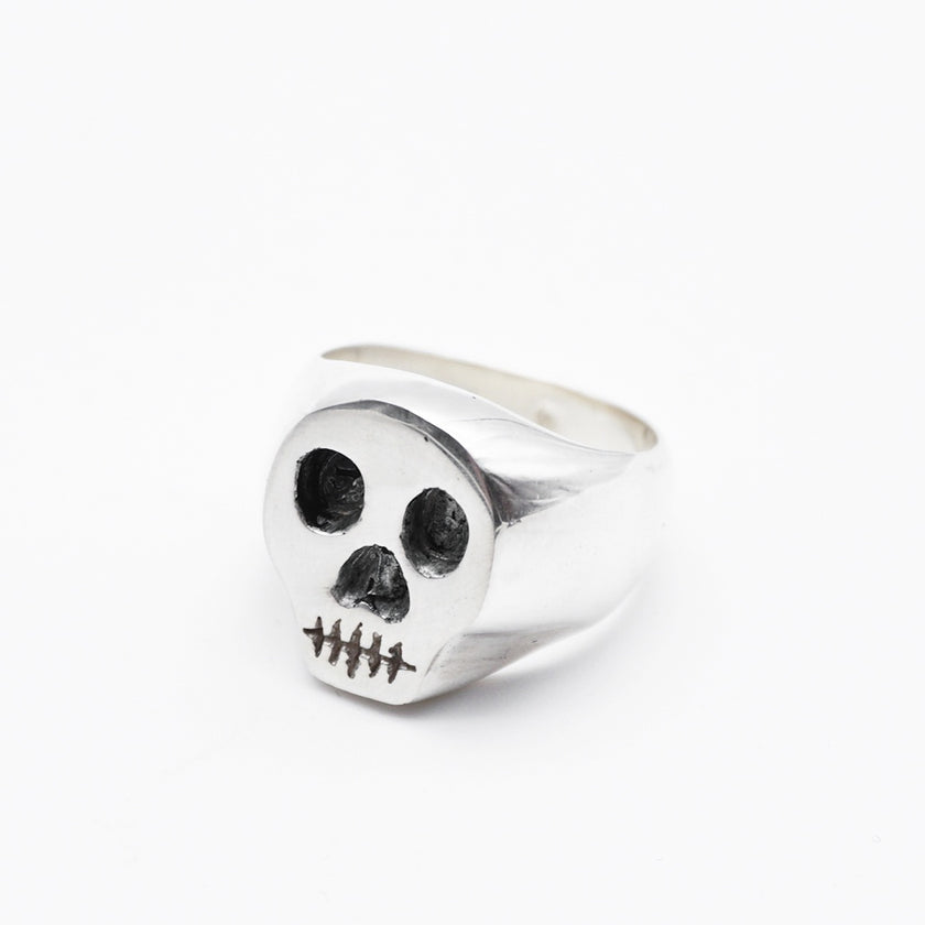 This is a Silver Skull Ring, handmade with 925 Silver (sterling silver), a product by Obbi Good Label. Under the "OBBI GOOD LUCK" collection featuring all silver jewelleries, this Skull Ring is originally drawn and traced onto wax mould before casting with sterling silver.