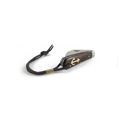 The brass anchor inlaid into the wooden handle gives this pocket knife a special flair.