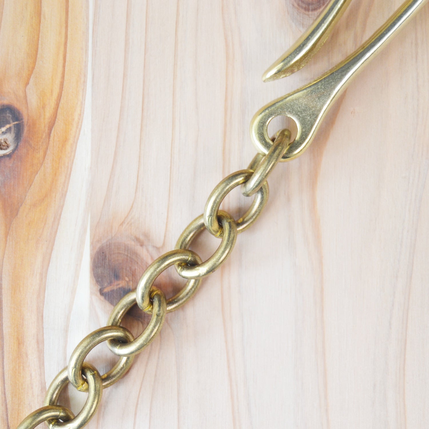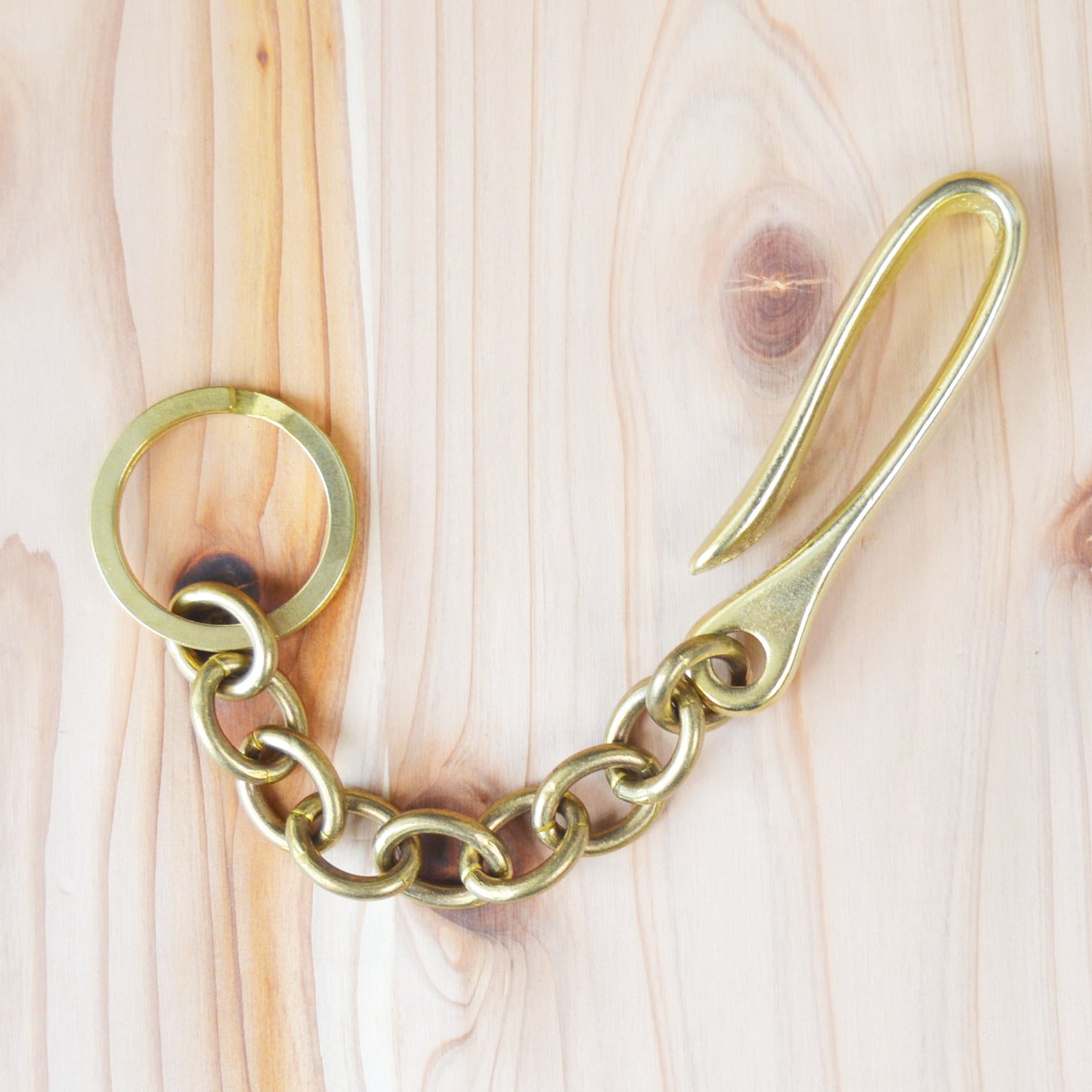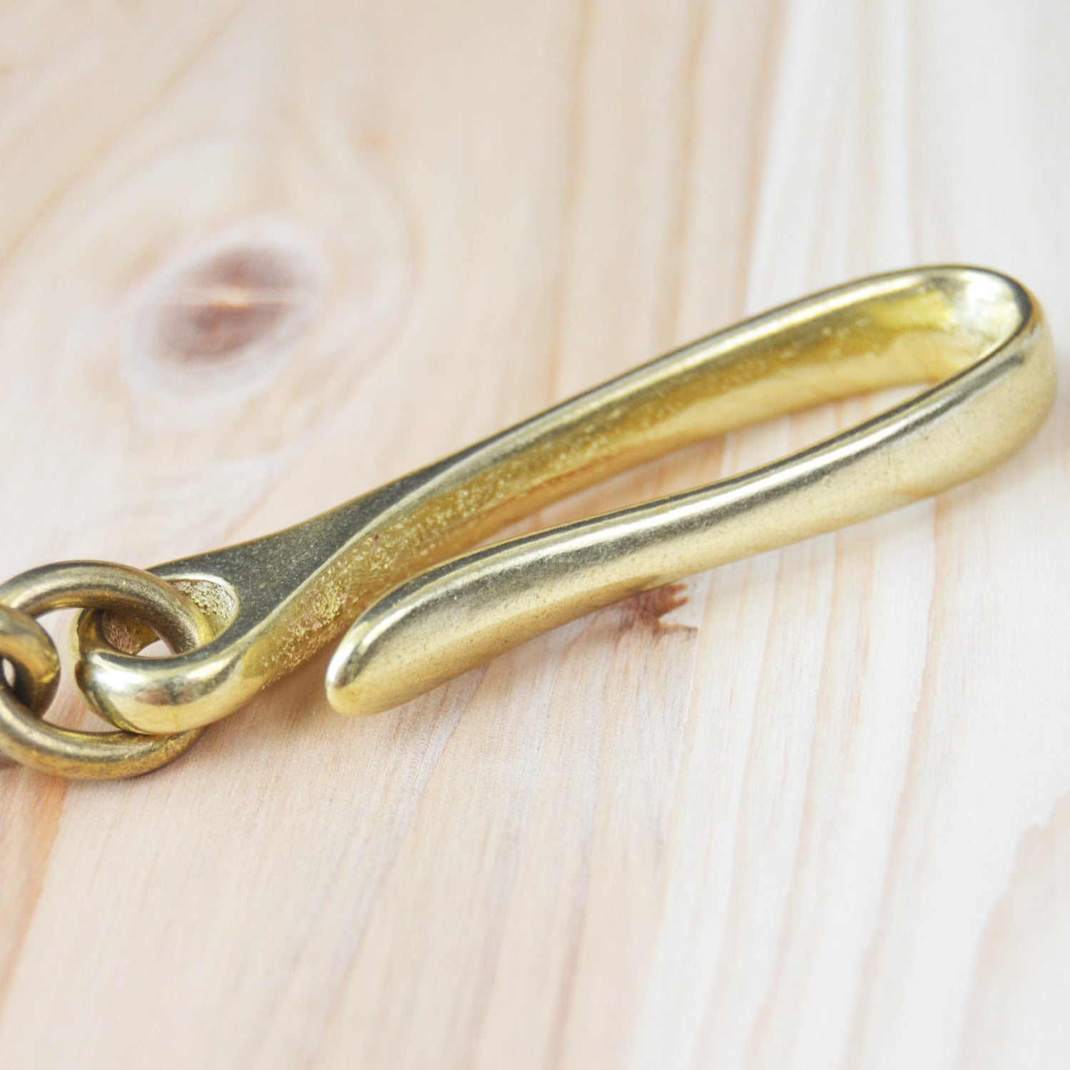 Large size belt hook key chain. The handmade sand casted hook is manufactured by a family-operated foundry established in 1958. The 2.5 mm wire oval chain is made by a metal parts manufacturer established in 1930. Kobashi Japanese letters engraved on the flat double ring made by a hardware supplier founded in the early 1900s. Comes with wax paper envelope.