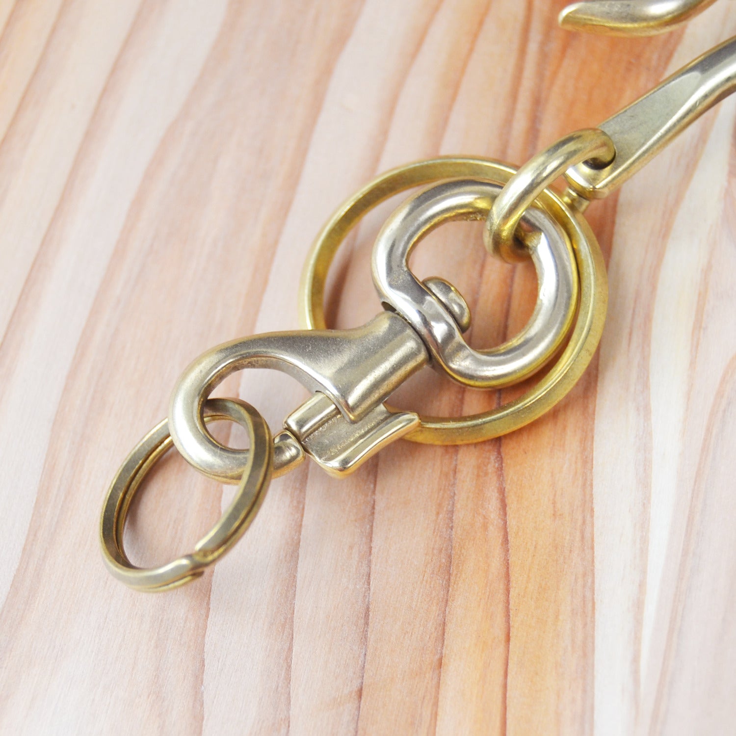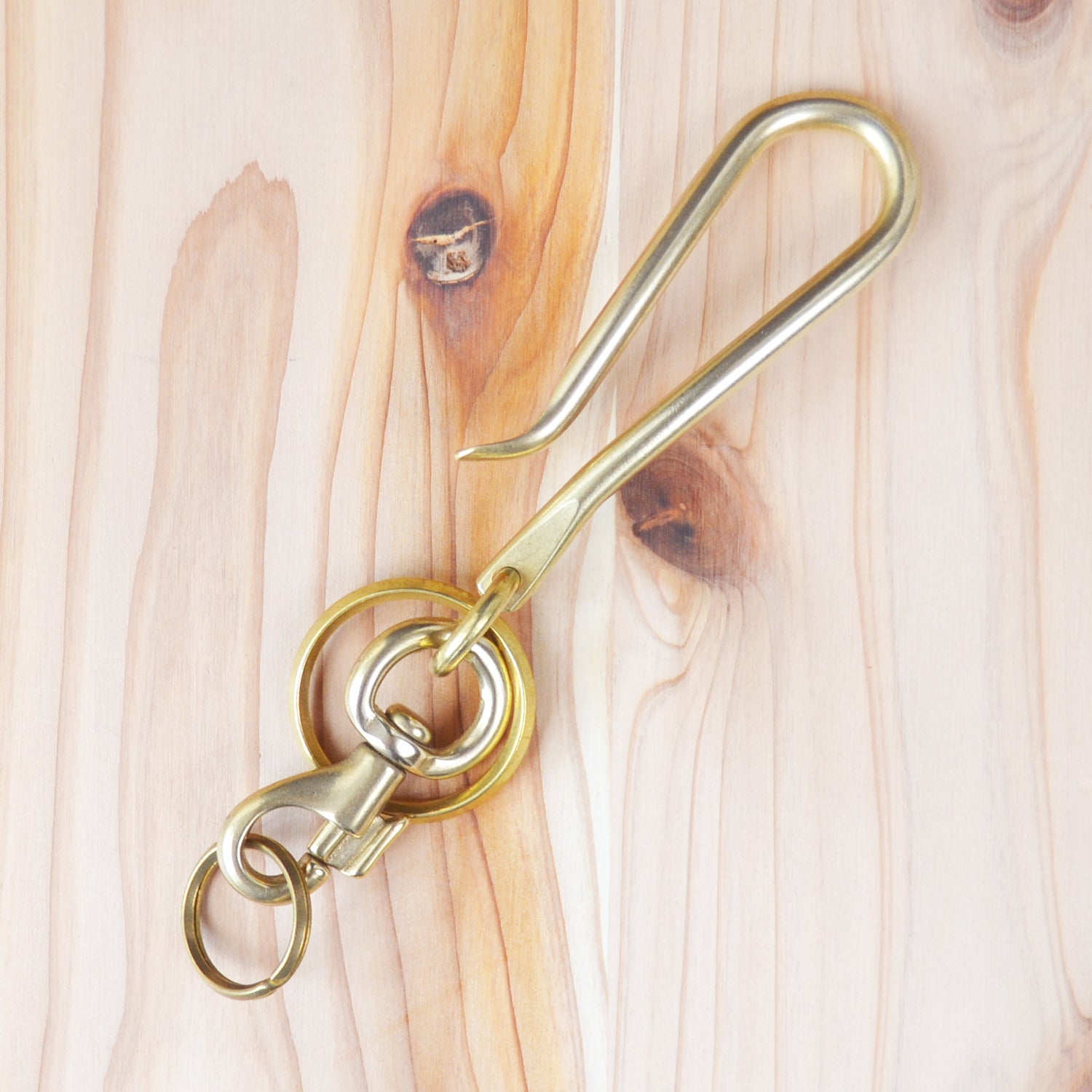 Handmade key hook with sand casted snap and detachable small double ring style. Good to use for car and motorcycle keys etc., detachable use keys with main keys. The oval ring and flat double rings are manufactured by a hardware supplier founded in the early 1900s. The hooks are angled to fit the body beautifully. 100% solid brass. Comes with wax paper envelope.