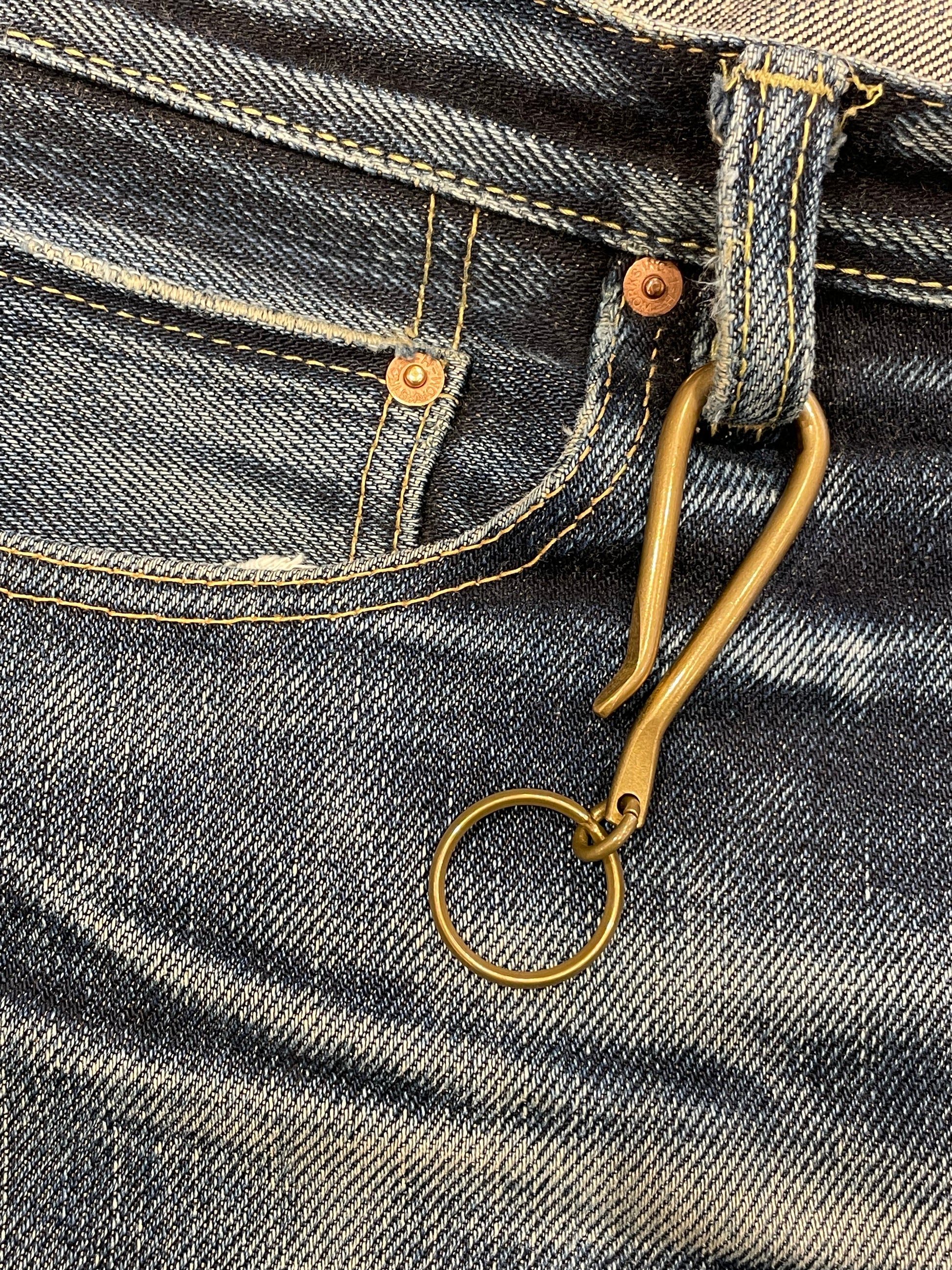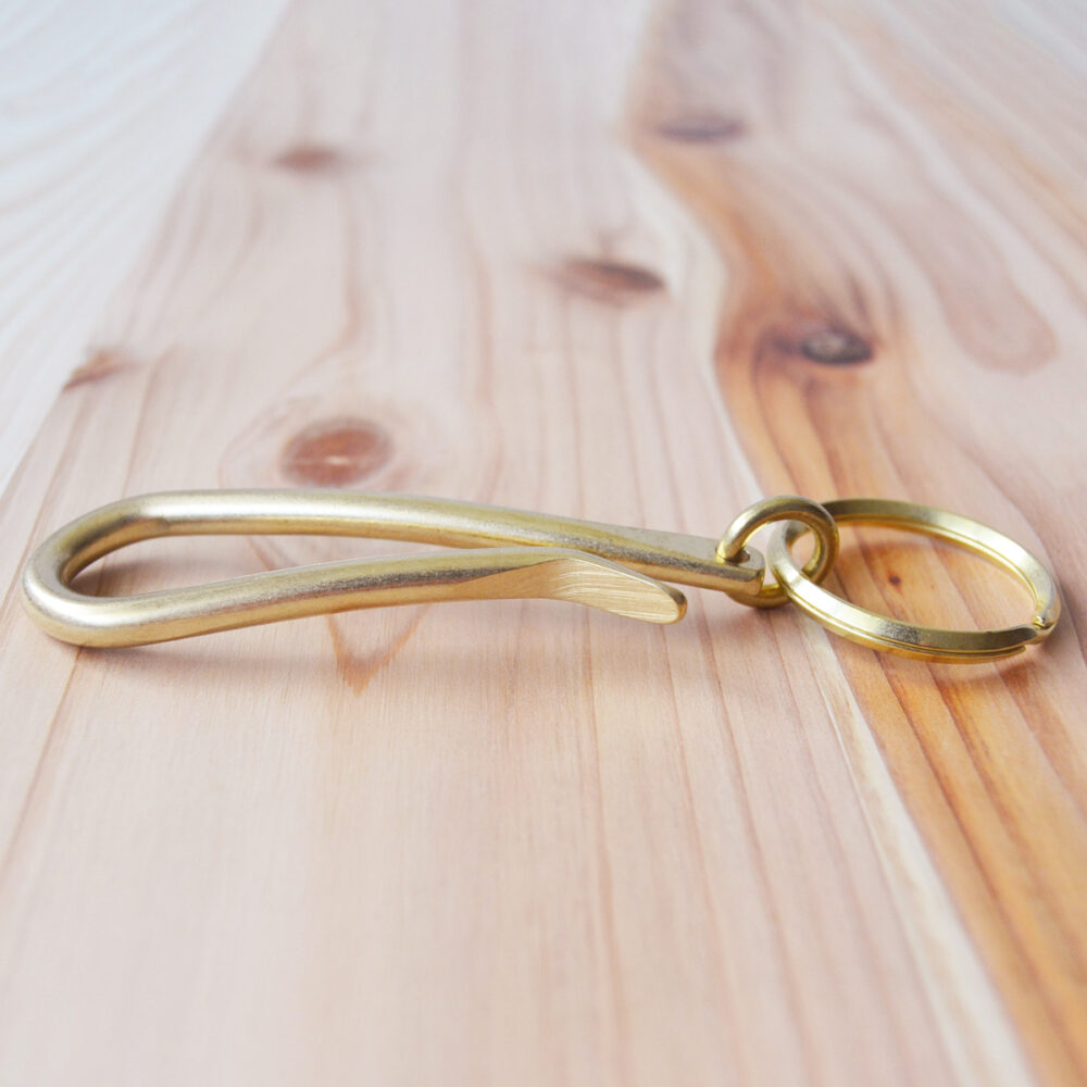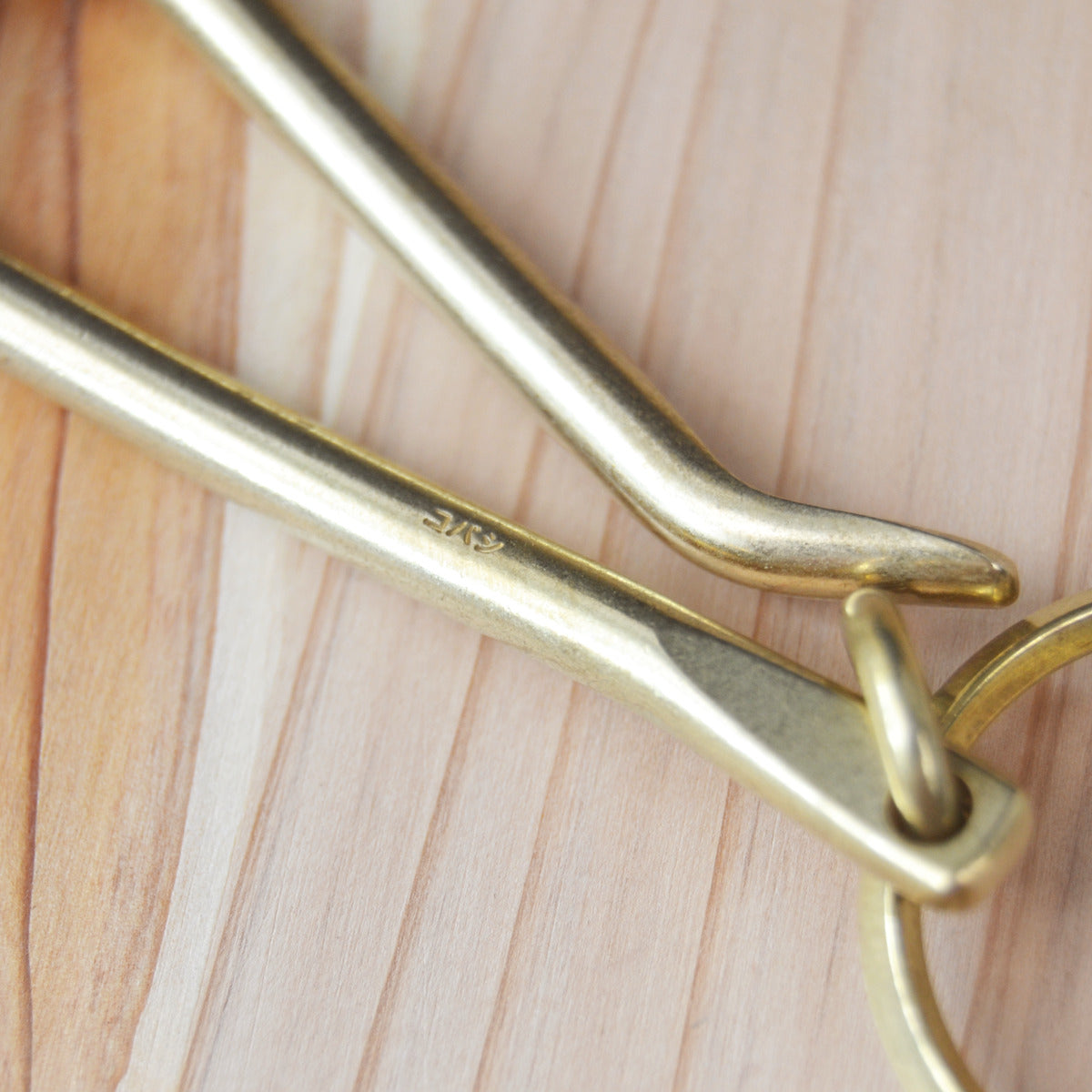 Iconic handmade key hook made entirely from 5 mm brass rods one by one, engraved Kobashi Japanese letters. We order it to the owner of a family-operated metalworking company. So if he quits, we can no longer produce them. The ring and double rings are manufactured by a hardware supplier founded in the early 1900s. The hook is angled to fit the body beautifully. 100% solid brass. Comes with wax paper envelope.